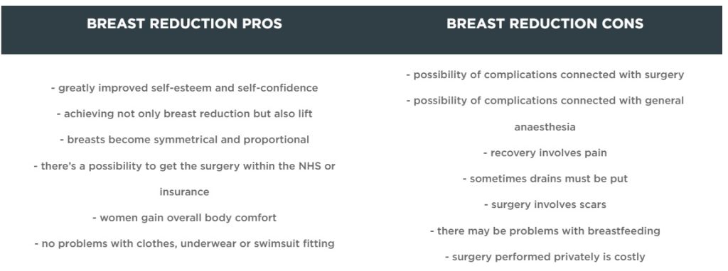 Listing the pros and cons of breast reduction surgery is a good way for women who are hesitant about having the surgery. Below we outline the pros and cons of breast reduction surgery.