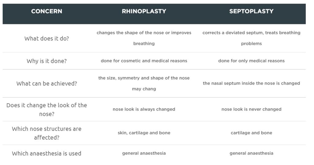 Rhinoplasty is a different procedure than septum surgery. Below, we present the key differences and similarities between the two surgeries.
